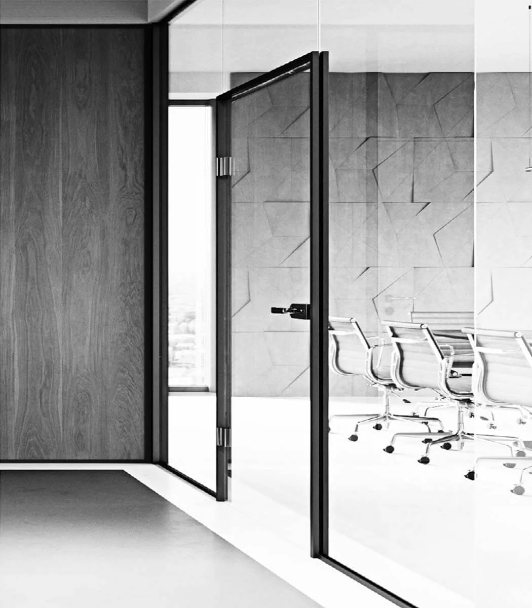 Drzwi całoszklane w zabudowie akustyczne – do biura
