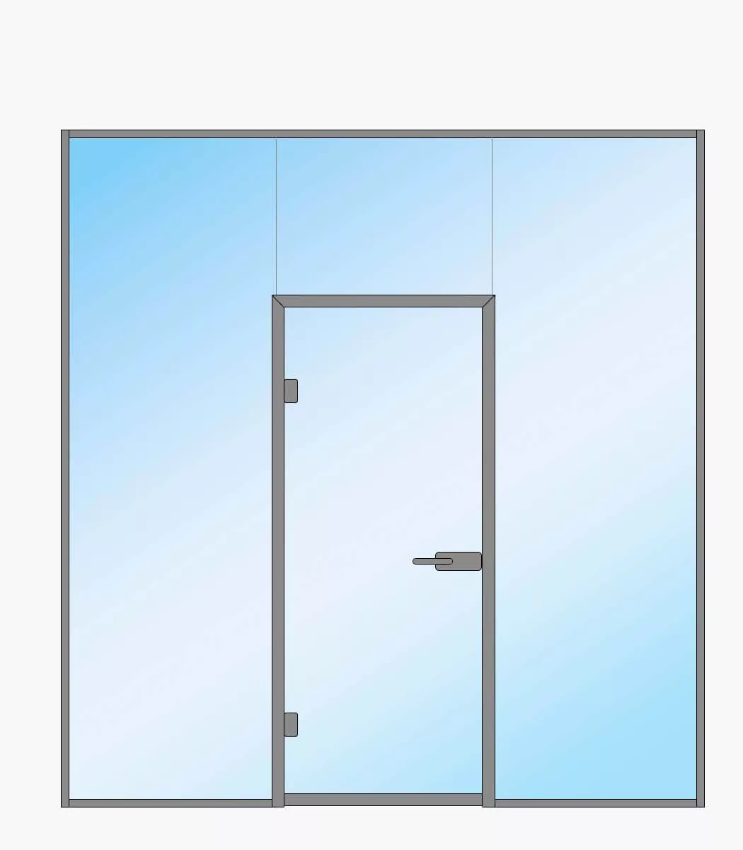Drzwi wykonane w całości ze szkła hartowanego o grubości 8 mm lub 10 mm. Istnieje opcja zamontowania samozamykacza nawierzchniowego oraz osprzętu do systemu kontroli dostępu.