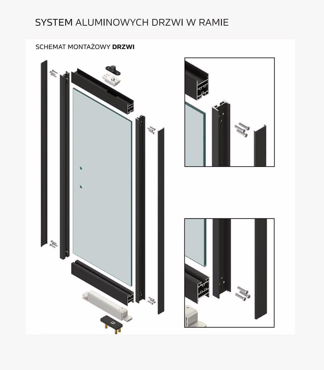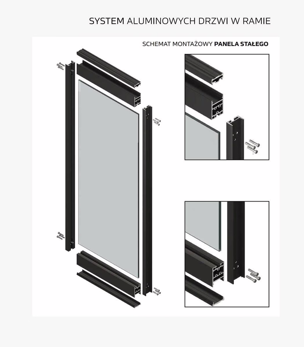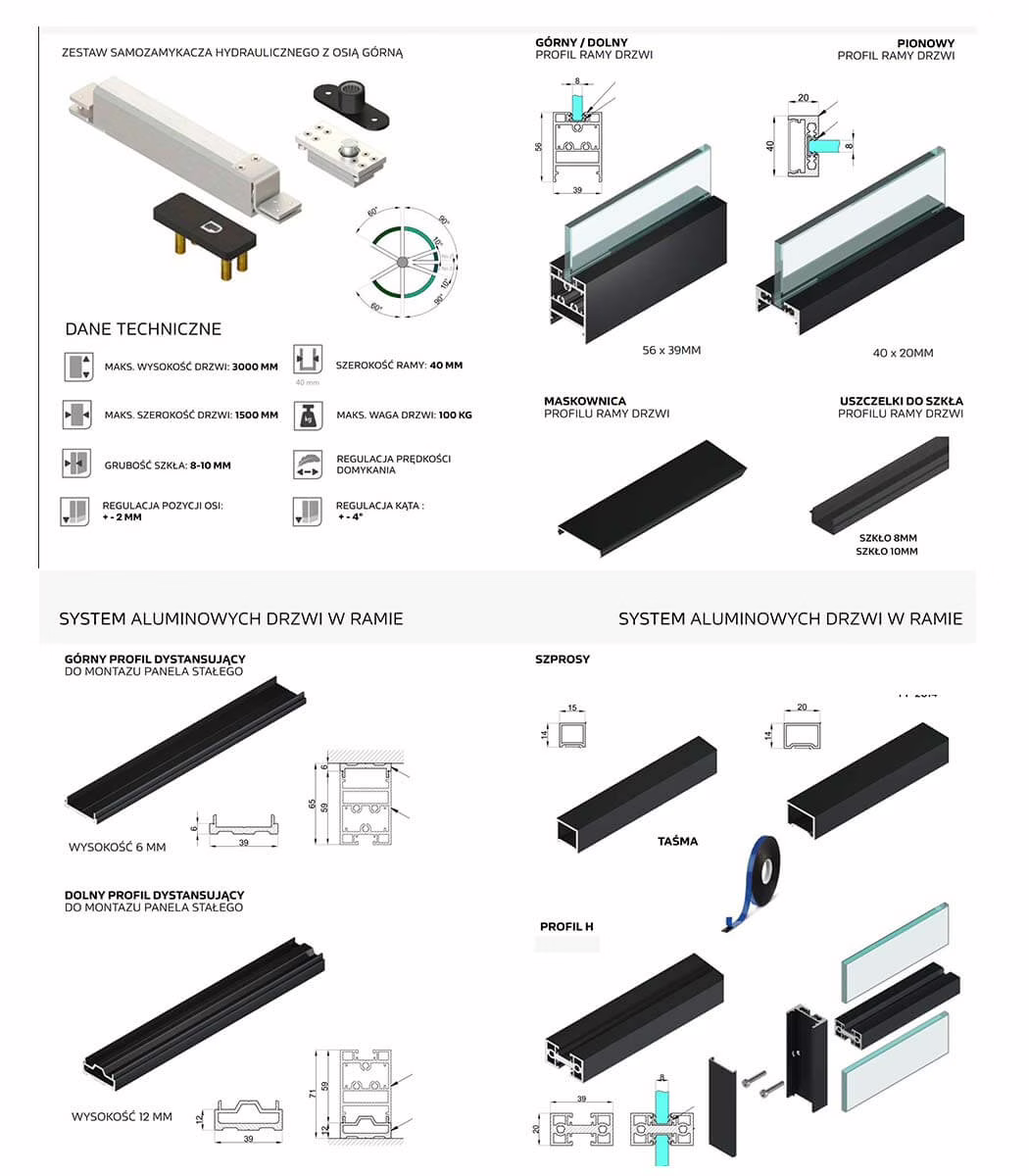 - drzwi szklane o wybranej grubości szkła z uchwytem pionowym
