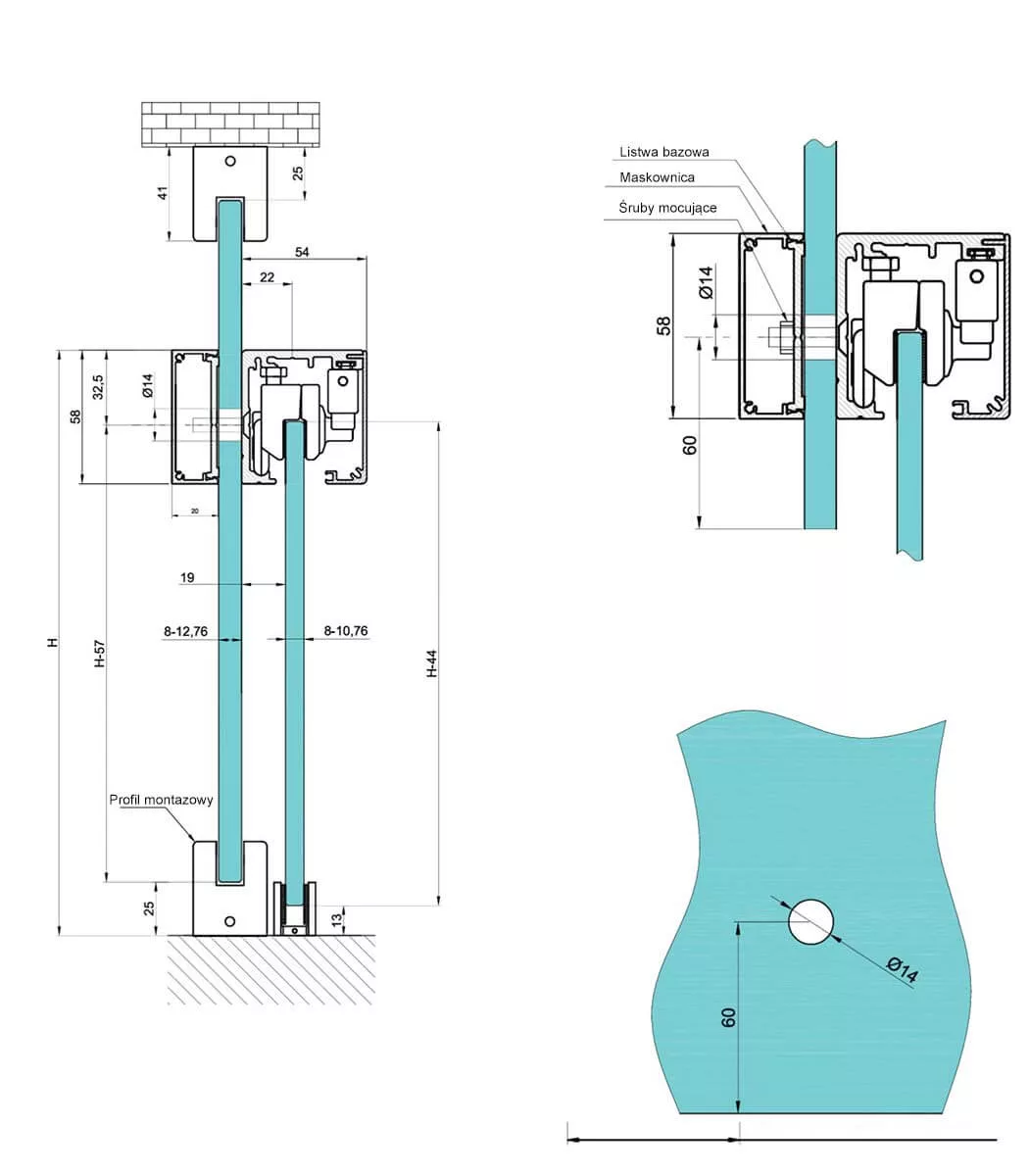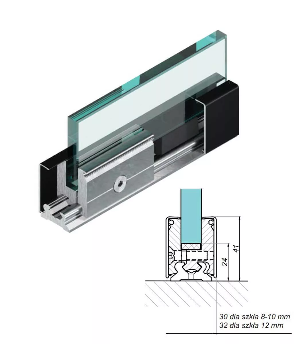 - system przesuwny wraz z wózkami (2szt), maskownicą obustronną, zaślepkami, cichy domyk