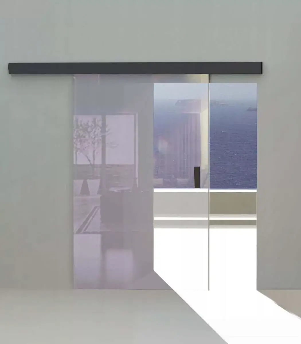 System do szklanych drzwi przesuwnych, łatwy montaż bez konieczności otworowania szkła za pomocą jednoczęściowych zacisków mocujących, możliwość zastosowania szkła, lustra, pleksi laminatów.