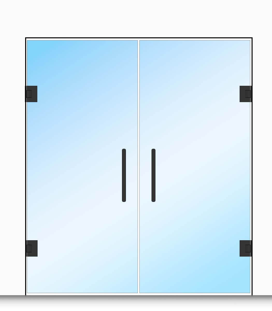 • drzwi szklane 2szt o wybranej grubości szkła dopasowane do podanej szerokości i wysokości wnęki