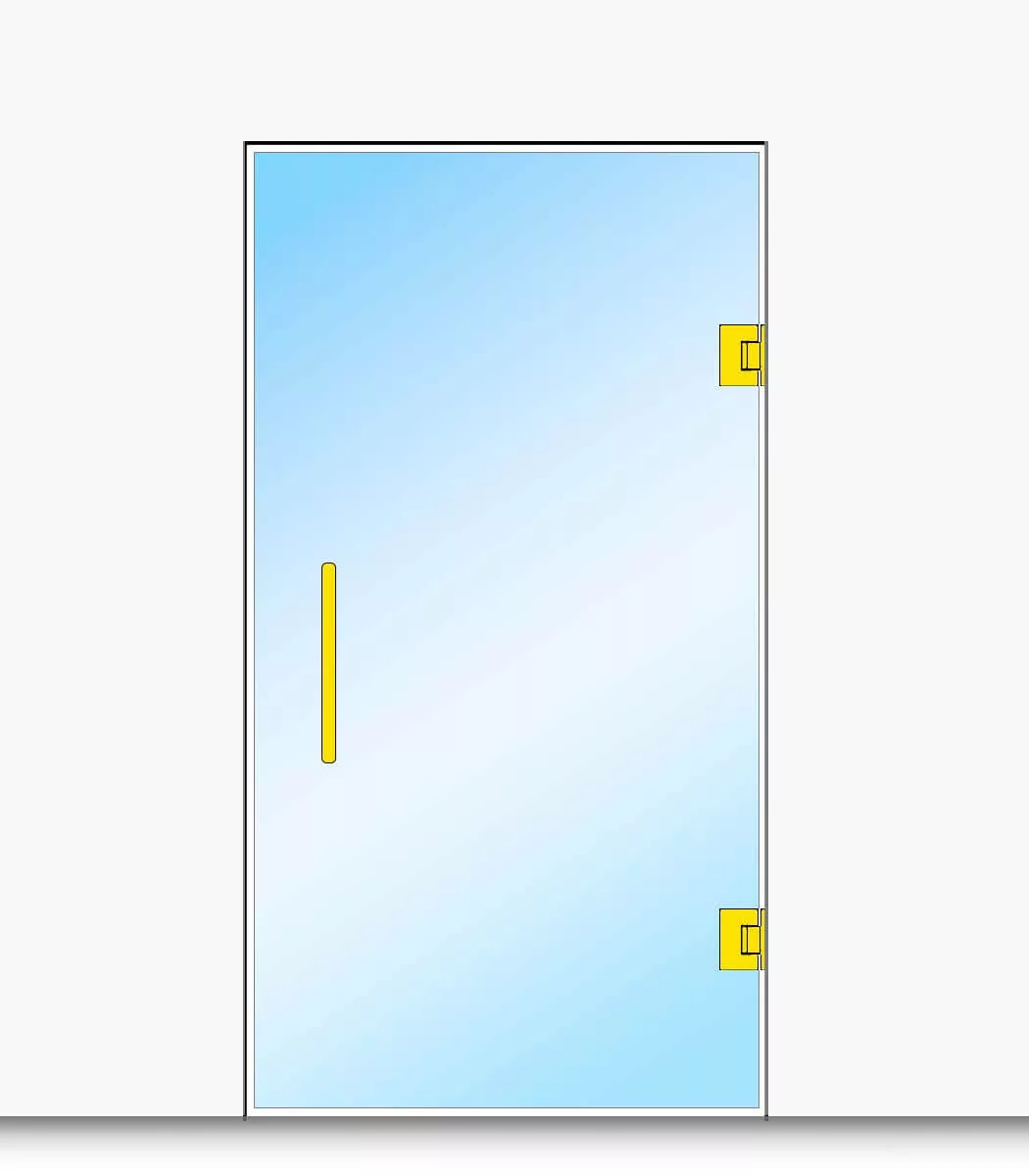 Drzwi szklane bezościeżnicowe otwierane w obu kierunkach - do wewnątrz i do zewnątrz.