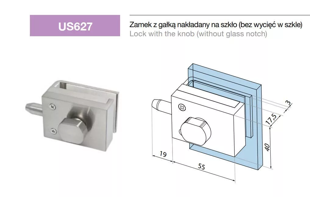 - zamek z gałką na otwierana ściankę