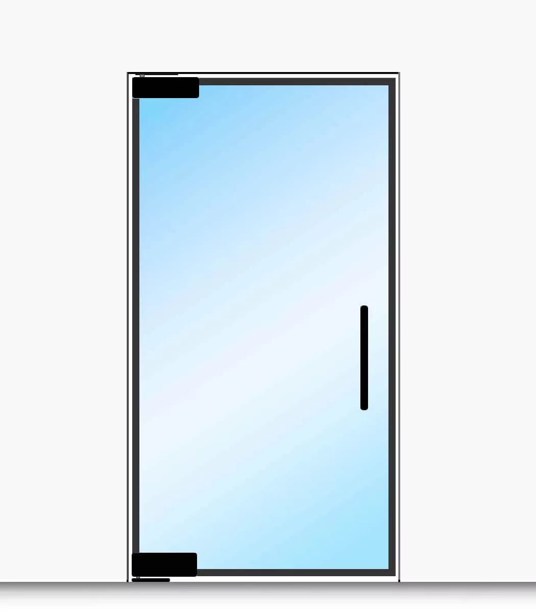 Szklane drzwi | bez ościeżnicy 2 zawiasy góra/dół kolor czarny 80 x 210 z czarną ramką
