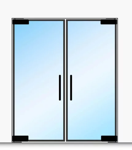 Drzwi szklane + ścianki boczne Drzwi szklane bezościeżnicowe otwierane w obu kierunkach – do wewnątrz i do zewnątrz. Wysokość wnęki: